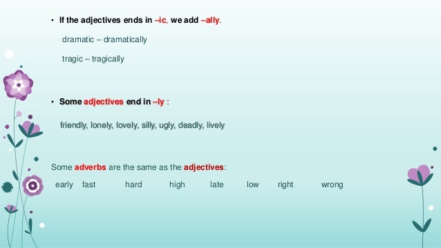 Quickly, slowly, loudly, quietly, beautifully and badly. Choose the best answer to complete each sentence. The lesson starts with a lead in, to introduce the difference between adjectives and adverbs by showing some pictures to the ss and elicit meaning and drill the pronunciation of the words. A few adverbs of manner have the same form as the adjective: To be honest, i'm not sure what type of adverb it is.